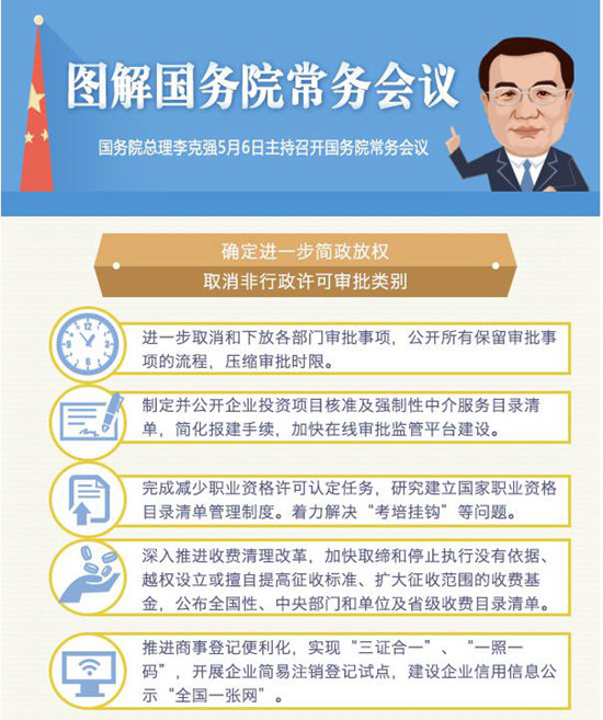 当好“服务者”,为创业创新清障是关键。围绕简政放权,本次常务会制定了多项举措,其中很重要的一项就是终结非行政许可审批。