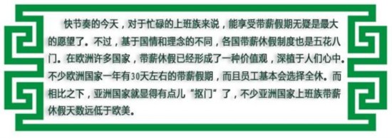 盘点各国带薪休假制度:欧洲最享受 亚洲最勤奋