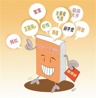 语言文字期刊《咬文嚼字》15日发布2015年度“十大流行语”,按照上榜次序是:获得感、互联网+、颜值、宝宝、创客、脑洞大开、任性、剁手党、网红、主要看气质。