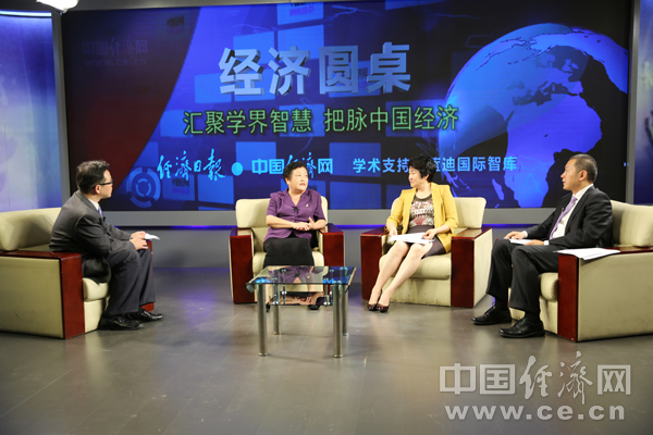 全国人大常委会委员、外事委员会副主任委员、中国社会科学院蓝迪国际智库项目专家委员会主席赵白鸽(左二)以及来自蓝迪智库的其他相关人士做客由经济日报社、中国经济网、经济日报新闻客户端联合主办的“经济圆桌”节目。中国经济网记者裴小阁摄