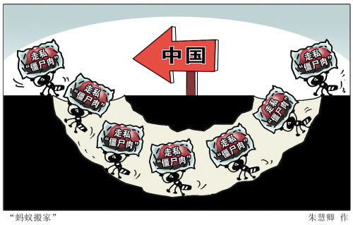 我们在谴责某些不厚道的外国人的同时,更应看到没有内鬼就引不来外贼。如果不是少数国人利欲熏心,大发黑心财,这些肉会有市场吗?为了逃避监管,一些不法商人铤而走险,处心积虑,形成了一条国外发货、香港拼柜、越南中转、中越边境“蚂蚁搬家式”偷运入境的冻品走私链条。正是有这些见利忘义的内鬼,僵尸肉才得以在国内畅销。