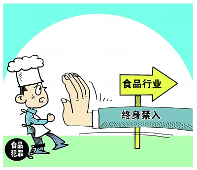新修订的《食品安全法》将于10月起施行,该法第135条规定,因食品安全犯罪被判处有期徒刑以上刑罚的,终身不得从事食品生产经营管理工作。这就意味着非法商家可能被判处“终身禁入”。(8月13日《人民日报》)