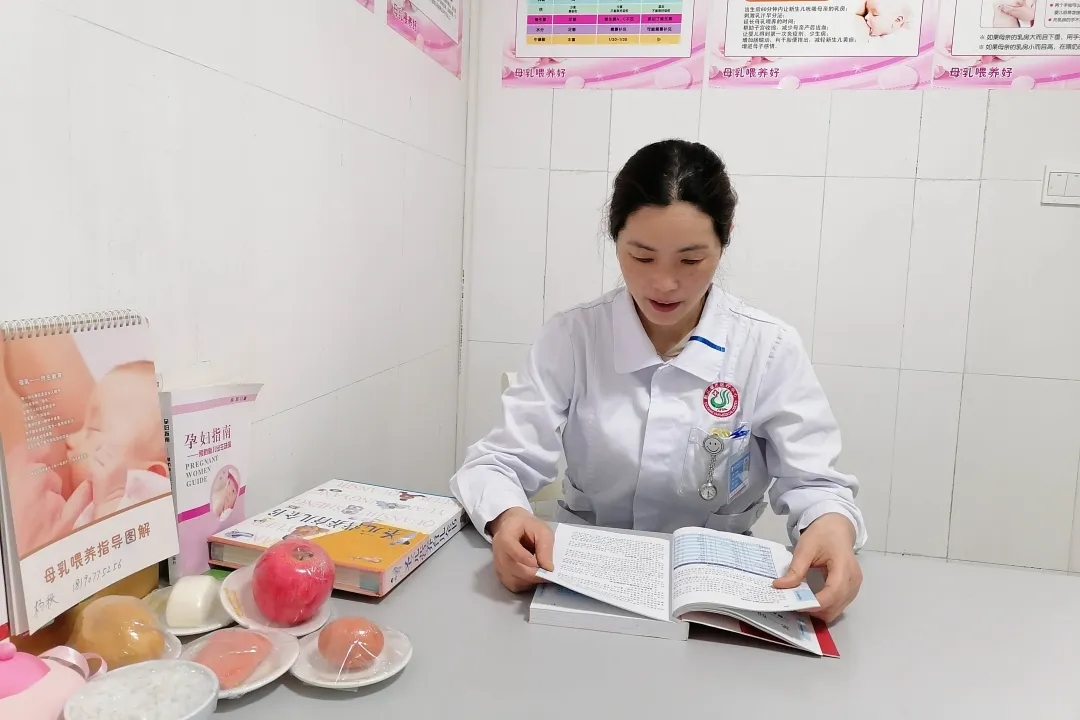 在四川都江堰市医疗中心病房里,杨秋一边给新手妈妈示范,一边耐心指导,不一会儿,臂弯里的小宝贝就在母亲温暖的怀里睡着了。
