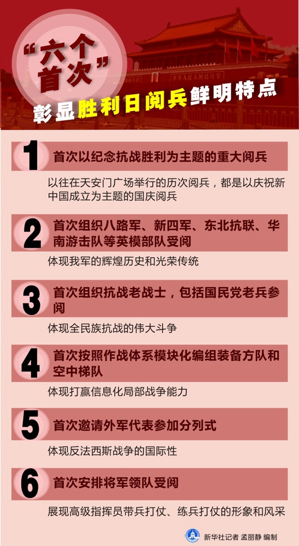 今年是中国人民抗日战争暨世界反法西斯战争胜利70周年。9月3日,中国将在北京隆重举行以纪念抗战胜利为主题的阅兵。