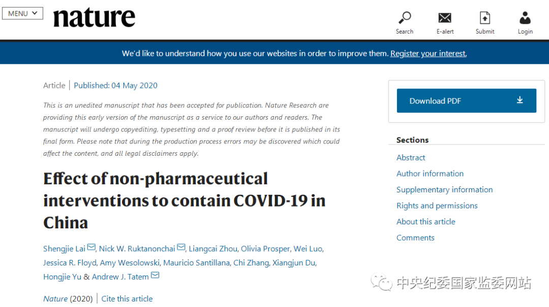 当地时间5月4日,国际顶级学术期刊《自然》网站发布了一项英中美多国科研团队的研究。研究通过建模发现,中国使用的三大非药物干预措施不仅遏制了新冠疫情在中国的发展,也为全球赢得了时间窗口。