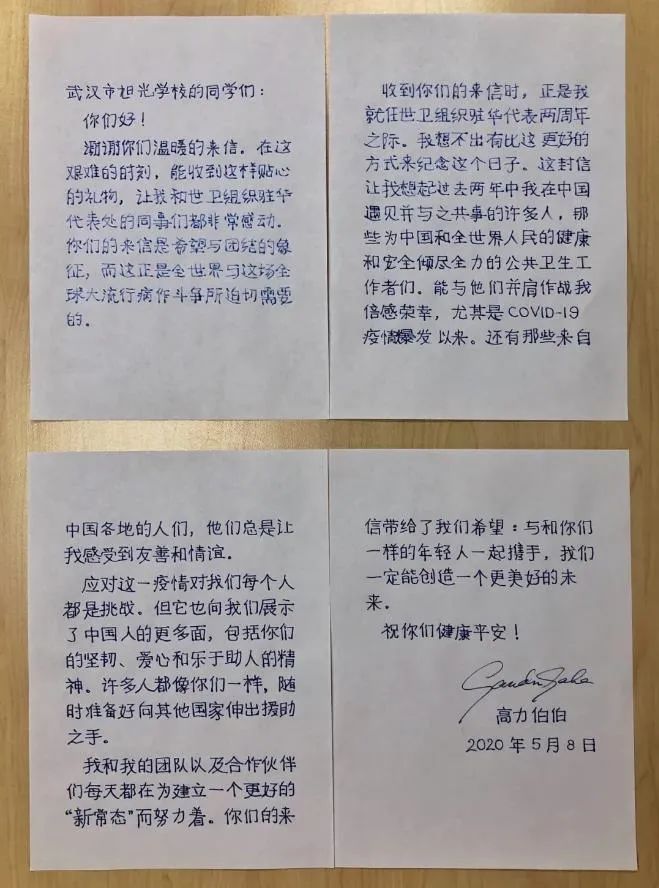 暖心!世卫组织给武汉中学生回信,这中文写得咋样?
