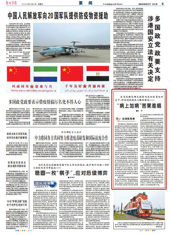 这些做法不仅无法帮助美国抵御病毒,同时还会进一步加剧严重的社会撕裂。弗洛伊德之死和蔓延美国各地的示威骚乱,难道不正是一些美国政客自己亲手种下的恶果吗?