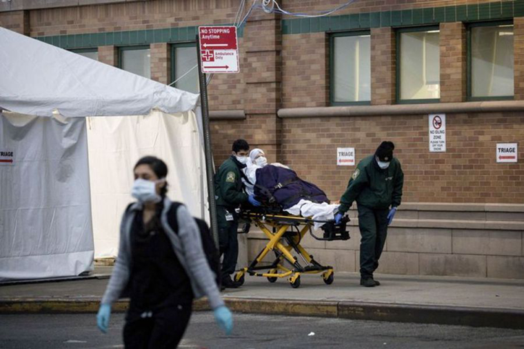 医护人员将病人送往美国纽约布鲁克林一家医院的急诊室。新华社发(郭克 摄)