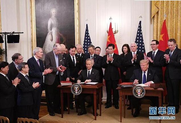 图为中美第一阶段经贸协议签约现场(图源:新华社)