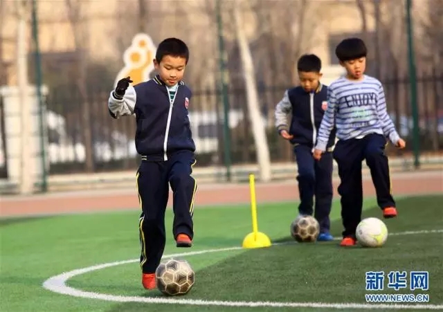 △ 天津市河西区梧桐小学学生在进行课后足球训练。(新华社记者刘东岳摄)