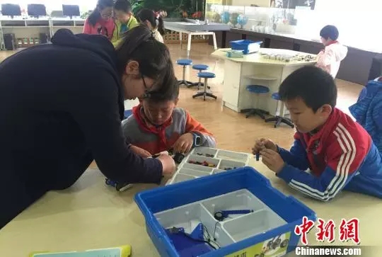 △ 图为甘肃兰州小学生放学后玩乐高机器人。(中新网记者刘玉桃摄)
