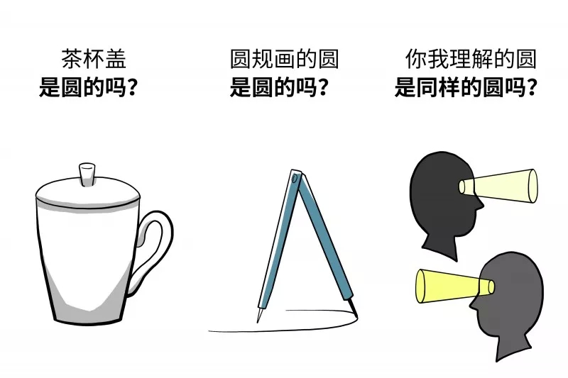 我反问道:可你如何证明我脑中的圆和你脑中的圆是同一种圆呢?