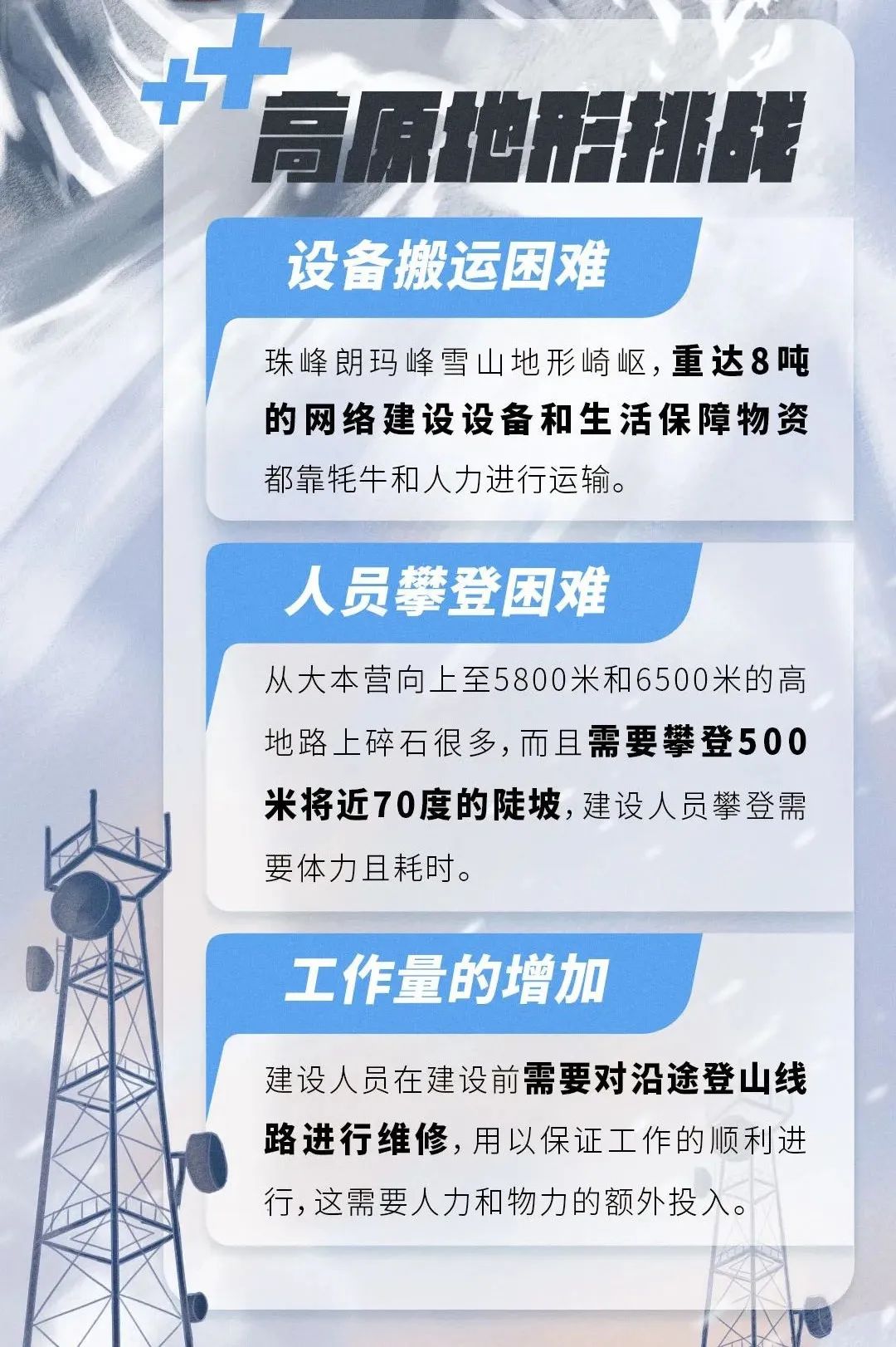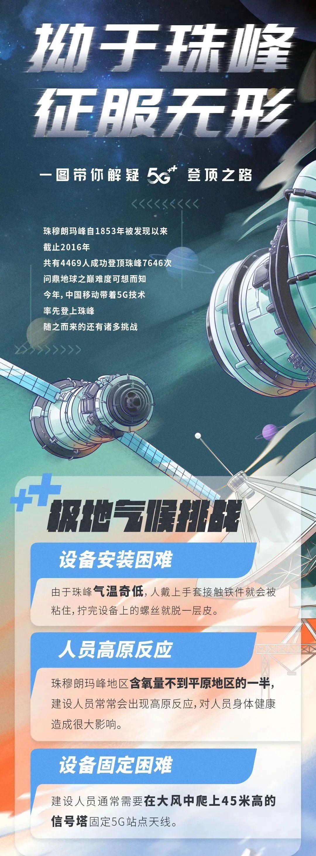在道路艰险、高寒缺氧的珠峰开通5G信号,