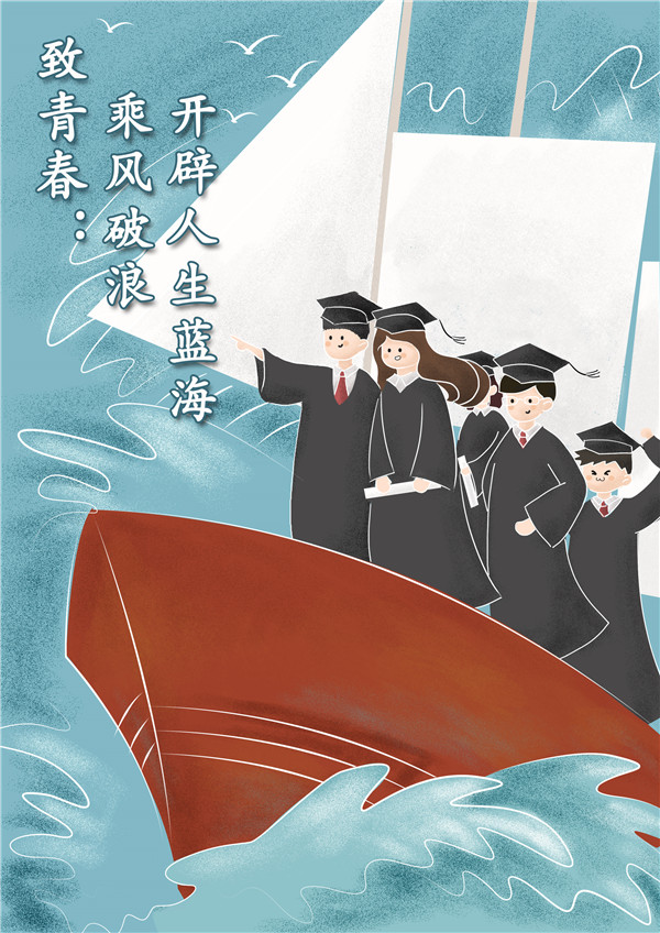 恰同学少年,风华正茂;到中流击水,浪遏飞舟。人生有高山低谷,有顺流逆流,但青春的可贵就在可以不断试错、不断重新出发。莫言蜀道难,以理想为舵、学习为帆、实干为桨,相信长风破浪会有时,直挂云帆济沧海。(漫画:王珺 文:苏芮)