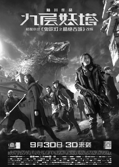 陆川的《九层妖塔》,科幻、怪兽、奇幻、探险杂糅在一起,将鬼族血脉、异兽觉醒、时空隧道纠合于飞上天的新故事里。请忘了原著吧,在电影里盗墓不是重点,地球鬼也不见踪迹,《九层妖塔》将灵异他者修改成了外星人,外星人曾经在一万年之前人类文明尚未进入文明社会时,失败于“羿”领导的逆袭。他们的存在,似乎是为了旁观人类文明进程,直到人类进化到20世纪现代工业文明变异时,才配合人类的野心和刺激,再次展开异类冲突。