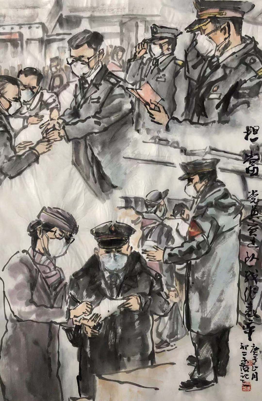 连日来,全国各地都在抗击新型冠状病毒感染的肺炎疫情。在铁路杭州站,工作人员刘玉海根据车站近期抗击疫情现场的感人故事创作了六幅组图,其中包括护航李院士、驰援武汉、战“疫”、一封家书等主题,现场感十足。