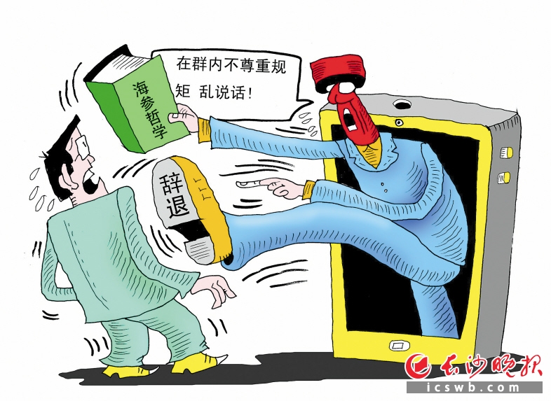 21日晚,企业员工丁先生在一个微信培训群内顶嘴老板的“海参哲学”,随后被移出该群、并收到辞退短信。丁先生摸不着头脑:就因为海参哲学顶嘴领导而被开除?“职业素养和基础素养不达标,在群内不尊重规矩乱说话。”对于辞退丁先生的原因,该公司人事部负责人如此告诉媒体记者。(11月23日《成都商报》)