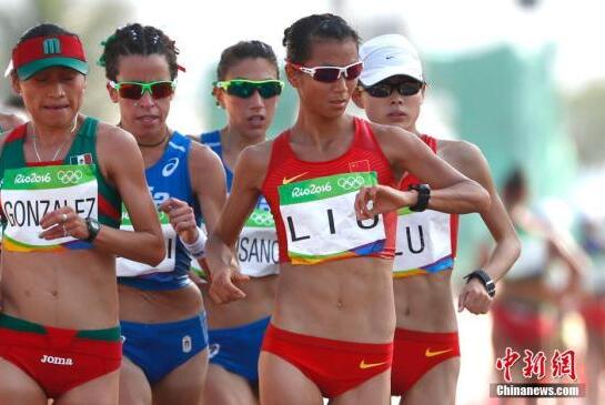 当地时间8月19日,里约奥运女子20公里竞走决赛,中国选手刘虹以1小时28分35秒摘取金牌。中新网记者 富田 摄