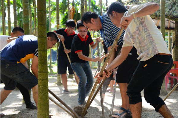 游客在黎家民宿体验黎族传统体育项目。资料图