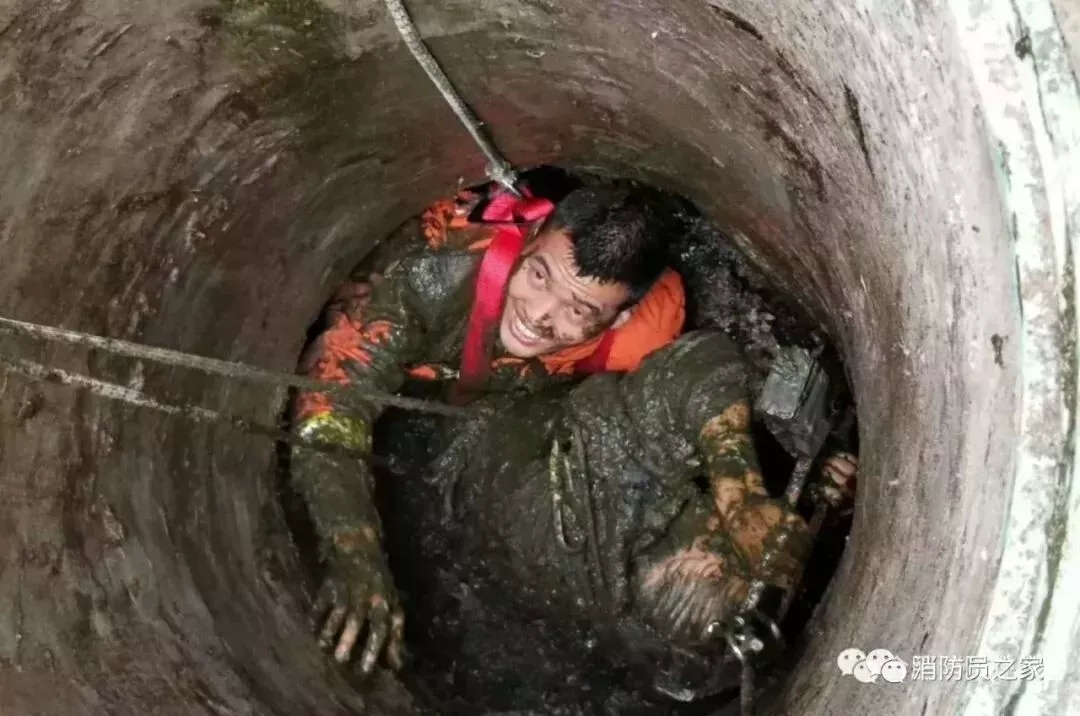 5月26日,安徽合肥一小区,一位80多岁老人一时不慎掉入排污管化粪池里,消防战士不顾恶臭,经过几次努力终将老人安全救出。