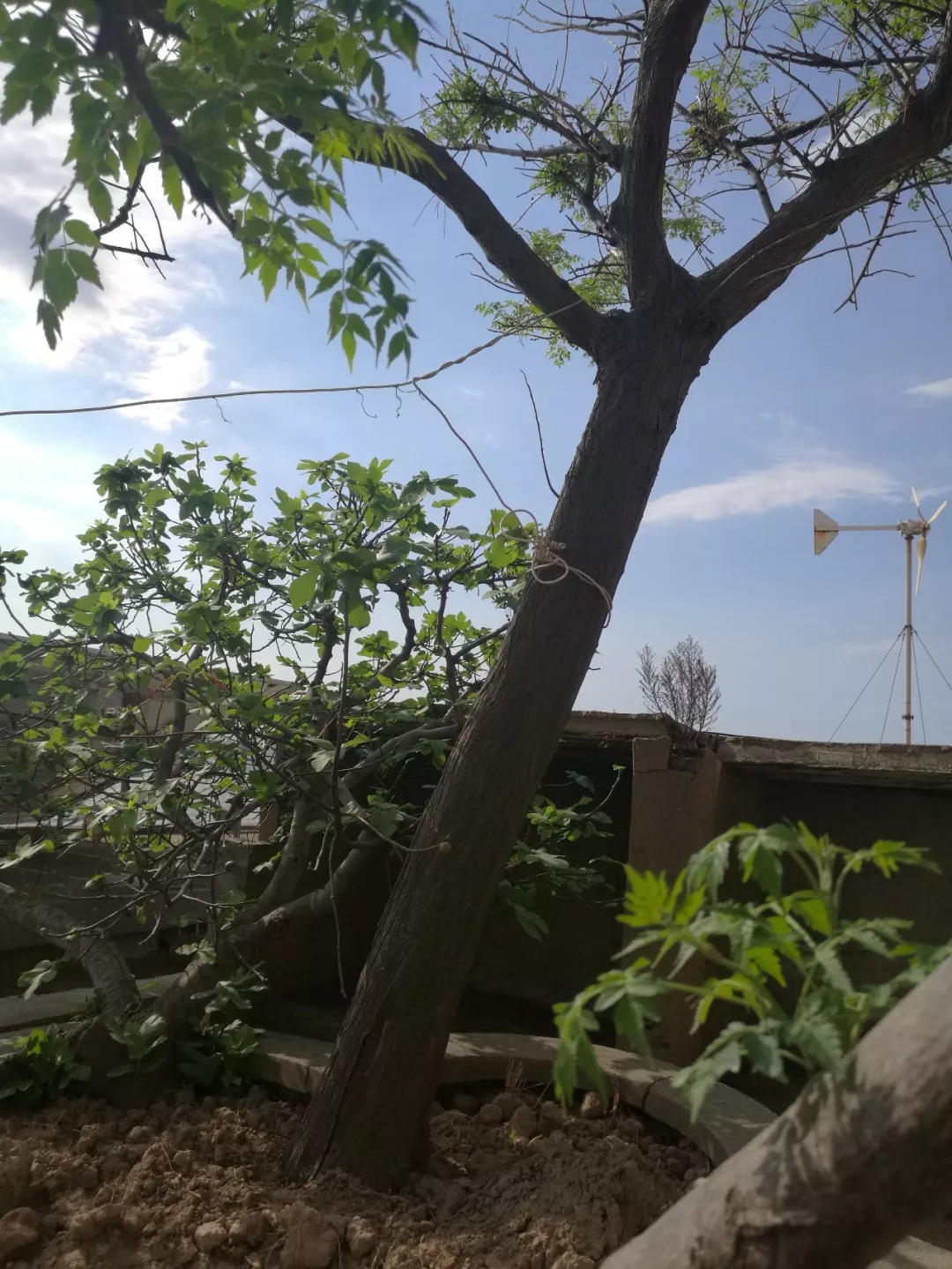 唉!哪有那么容易啊?为了种树,我们托人从岸上捎土、种子、树苗,直到儿子王志国出生了,树都没活上一棵!但这个孩子的出生给我们带来了希望!老王说,人能活,树就能活!等孩子会爬时,终于种活了第一棵苦楝树,就是西边最大那棵,现在有30岁了。