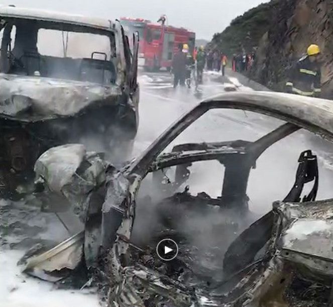 就在这时,距离20多米的两辆肇事车再次发生了巨雷般的爆炸,玻璃、铁皮、零件飞出了10多米远。
