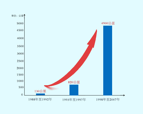 统计数据显示,1988年至1992年,我国高速公路年均通车里程约130公里;1993年至1997年,超过820公里;1998年至2007年,这一数字达到4900公里左右。1998年,成为高速公路建设加速的拐点。