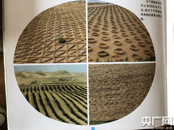张克智曾设计的不同麦草沙障的实验(央广网记者 王晶 摄)