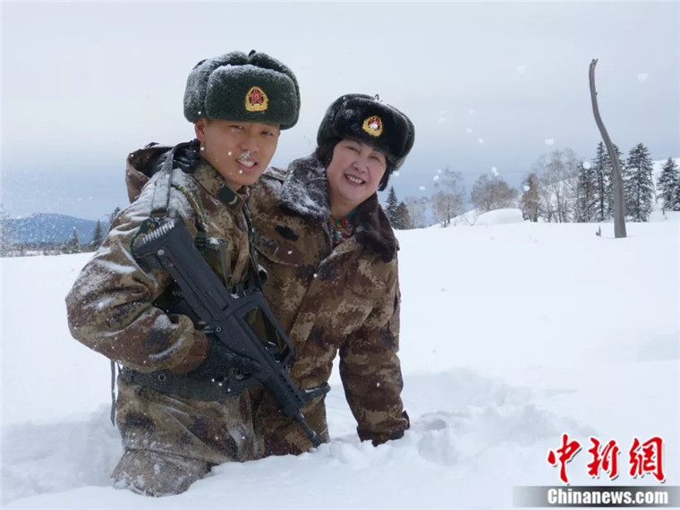资料图:朱妈妈和天池脚下的维东哨所官兵一起过春节。受访者供图