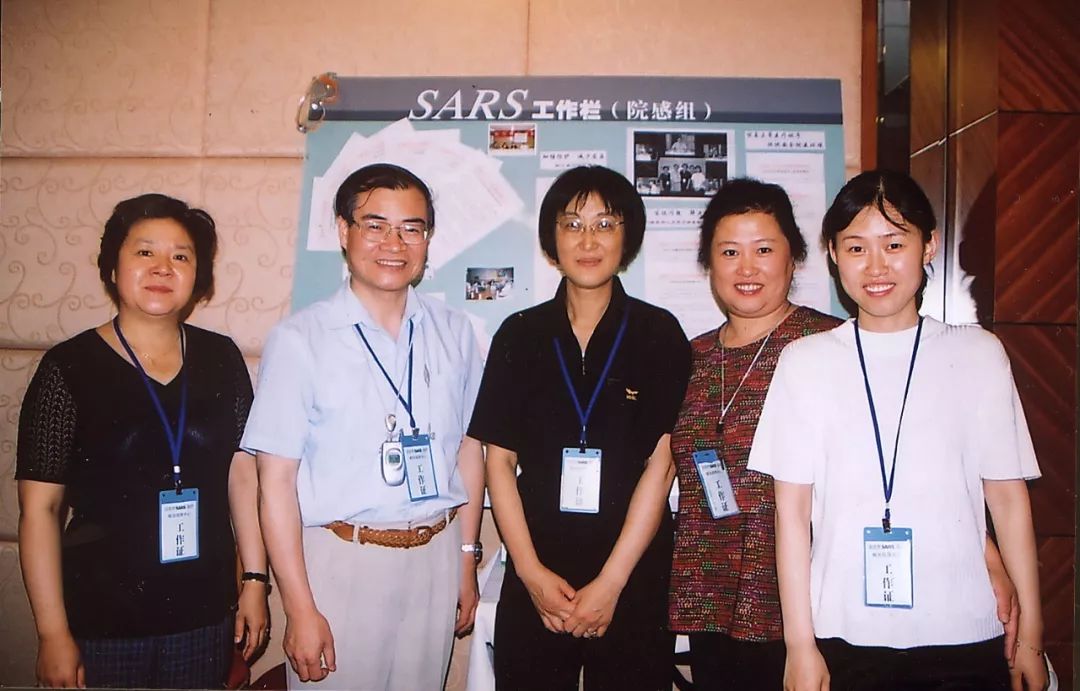 李素英(左一)2003年是北京市SARS医疗救治指挥中心院感组专家成员