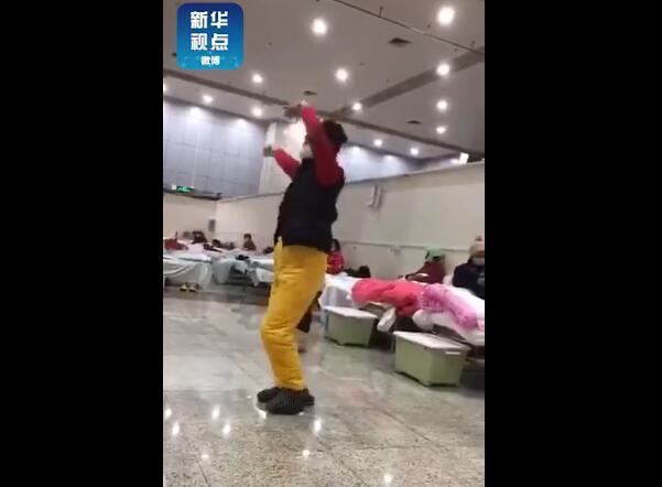事实上,在江汉方舱医院内,不仅有“读书哥”,还有“跳舞姐”。一位通过跳舞来锻炼身体的女士说:“现在大家都不容易,尤其是医护人员,自己一定要配合,放松心态才能有更好的治疗效果。”