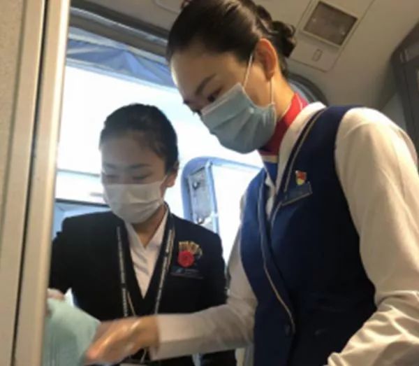 在飞行途中,发现了一名发热病人,苏康迅速采取行动,按流程处置,并坚持独自为旅客服务,测量体温。