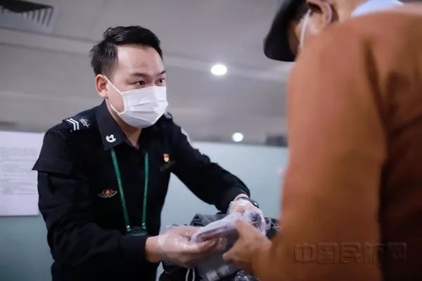 在进入疫情防控期后,白云安检工作人员上岗必须佩戴口罩手套,全副武装起来。尽管如此,仍然有旅客在接受人身检查时显得有所顾虑——“你们安检员每天要跟大量的旅客直接接触,会不会容易引起交叉感染呢?”面对旅客的迟疑,邓伟会取来消毒酒精说,“这是我们开通道前才用过的酒精”,并当面给人身检查员进行手部消毒,彻底打消旅客的疑虑。