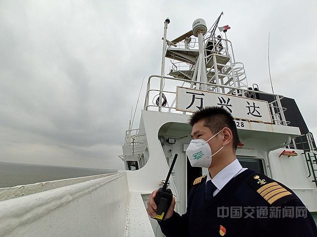 在疫情防控的关键时期,市场口罩供应吃紧,企业在抓紧生产,生产口罩的原材料供给十分急迫。2月7日15时,船长205米、载有76个集装箱生产口罩原材料的中国籍集装箱船舶“万兴达”轮,在长江引航员的引领下,安全及时靠泊南通通海集装箱码头。
