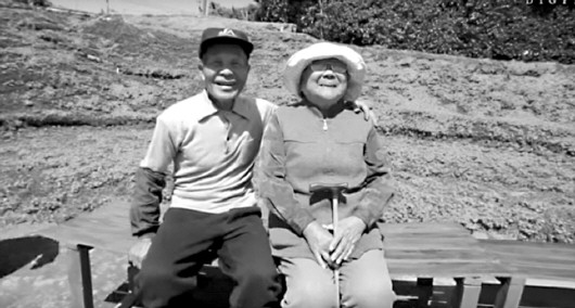 黑木夫妇坐在花海中,脸上洋溢着幸福的笑容。