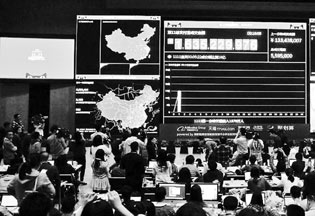 第一分钟破亿,第二分钟破3亿,第六分钟破了10亿……在数据成倍往上刷的同时,前任CEO马云来到阿里巴巴西溪园区见证“双11”的热闹场面。11月11日,浙江杭州阿里巴巴淘宝总部现场直播“双11”网购盛况。