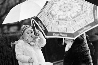 2月26日,经历了120小时雾霾天气的北京迎来降雨。随着冷空气东移,北京风雨影响开始显现,全市大部分地区降下小雨,不少市民戴口罩、打雨伞冒雨出行。
