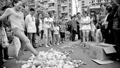 16日,因幼儿园给孩子吃的食材疑似变质,多名家长聚集在重庆某民办幼儿园内讨要说法。不少家长反映,孩子经常出现呕吐、拉痢疾情况,疑因幼儿园食材不卫生所致。图为家长们从幼儿园食堂找到的发霉的苹果、疑似变质的西红柿,以及一些被削过数次的胡萝卜。