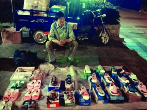 葛新峰在力宝广场北侧桥上摆摊 宋体佳 摄