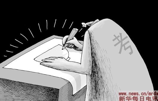 日前,2015年国考笔试举行。据统计,本次考试共有141万人通过招录机关资格审查,近90万人实际参加考试,参考人数与录用计划数比例为40∶1,报考比例较去年有所下降。有关负责人表示,考生报名日趋理性。