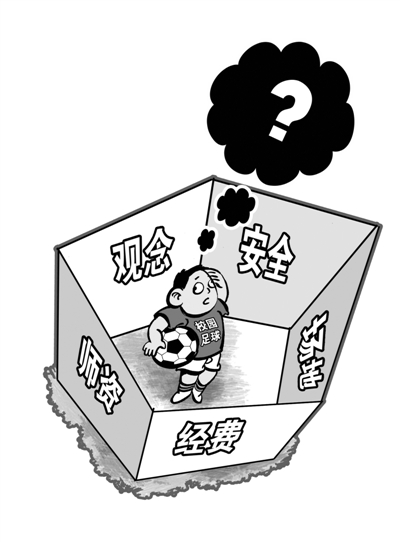 《中国足球改革发展总体方案》出台后,地方和学校积极响应校园足球改革,但一些窘境也随之出现,如用足球项目替代原有的其他体育项目、乡镇中心校以上的学校足球老师数量严重不足、相关经费该从哪里来、足球场如何保证、家长担心孩子踢球出现安全问题,等等。也就是说,校园足球需要的条件是全方位的,需要因地制宜,在多方努力中不断完善,逐步解决促进我国足球改革发展的相关困难和问题。 (时锋)