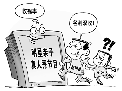 近年来,电视真人秀节目发展相当迅速,明星子女参加的真人秀节目也多了起来,这丰富了荧屏。但与此同时,盲目跟风的也有不少,儿童真人秀节目逐渐变味、走样。一些“星爸星妈”甚至普通人为了让子女出名趁早,在节目中无底线地秀“童星”,把孩子的隐私当成了节目的卖点。这种状况不仅让观众大倒胃口,而且成为“星二代”成长路上的新烦恼,也误导了电视机前的家长和孩子,不利于孩子的健康成长。