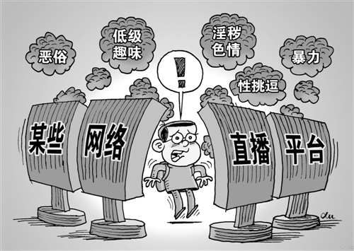 点 评 随着网络直播平台井喷式发展,草根直播内容已不限于娱乐、体育等领域,而是逐步拓展到生活中更多场景。然而,少数恶俗、低级趣味、粗口、暴力甚至淫秽内容也在污染着网络直播空间,对青少年成长、社会风气和公序良俗产生恶劣影响。主播的小窗不是“自家天地”,虚拟空间不能无视道德规范,更不是法外之地。相关企业作为经营主体也不可卸责,要共同营造积极健康的网络环境。