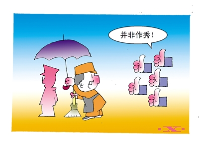 据《北京青年报 》报道,哈尔滨一位清洁工为大雨中的执勤战士撑伞获众多网友点赞。6月10日晚,雨中的哈尔滨中央大街上,一位身穿保洁服装的男子站在一名执勤的战士身后,为其撑伞。有行人拍下了这组照片并上传至网络,一时间,这名撑伞男子在网上“火”了起来。这名男子名叫周刚,今年57岁,是中央大街的一位清洁工,他告诉记者,当时照片中的战士淋着雨执勤,他没多想就上去帮他撑伞了,而自己“只是做了件小事”。有网友评论,虽然“只是做了件小事”,但却彰显了大大的正能量。