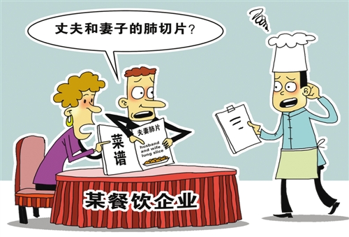 “童子鸡”被翻译成Chicken Without Sex(没有性别的鸡),日常生活中,类似这种简单粗暴的菜名翻译,让人啼笑皆非,出尽“洋相”。对于英文译写方面的种种乱象,国家质量监督检验检疫总局与国家标准化管理委员会日前发布规范,明确规定包括餐饮、交通等13个领域的英文译写原则。乱译菜名虽是一桩小事,却反映了企业文化品位与服务意识的大问题。随着中外交流的日益密切,餐饮企业还需努力提升服务意识,精细化服务流程,让有着悠久历史、深厚积淀的中国美食得到更好的推介。 (时 锋)