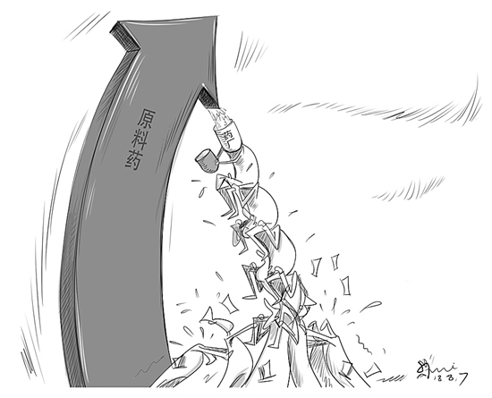 近日,辽宁省药品和医用耗材集中采购网发布预警通知,涉及81种不能正常供应配送的药品,其中17个药品以原料药价格上涨、中标价格低为由不能正常供应。浙江某药企负责人发现,苯酚从230元/kg涨到23000元/kg,涨99倍,创造了原料药最高涨幅纪录。该负责人称:“基本上两三家大药厂占据九成以上的市场份额。因此垄断市场、操纵价格变得比较容易。”(《钱江晚报》8月7日)