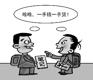 “做一本暑假作业20元,讲一道题5元,借一次笔记5元,如果没钱,用笔记本、签字笔、橡皮、薯片等东西来换也行。”据了解,一些地方的中小学中,包括“学霸”讲课收费在内,“有偿帮助”很盛行,并得到了部分家长和学生的认可。眼看就要开学了,这样的“生意”是否应该制止呢?(9月5日《北京晚报》)图/赵顺清