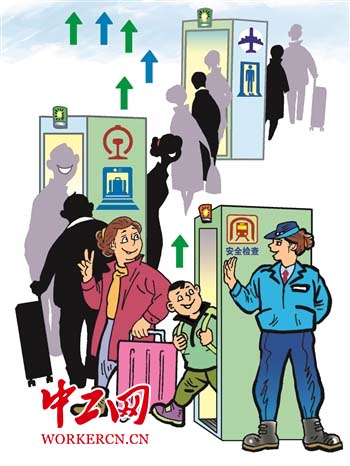 据媒体报道,乘坐高铁,排队安检,换乘地铁,还要排队安检……重复安检的现象,给广大乘客带来不便。今年春运这种现象已有改观,安检互认政策在北京、上海、广州等不少城市的交通枢纽实施,换乘旅客只需一次安检即可。