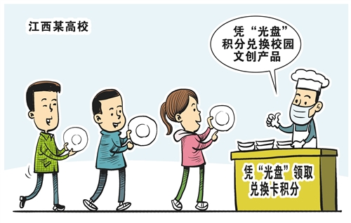 凭“光盘”积分兑换校园文创产品、在智慧食堂按需自助取餐、戴上VR眼镜体验粮食种植的艰辛……今年8月份,江西省教育厅向全省教育系统发出坚决制止餐饮浪费行为的通知,通过开展专题教育活动、健全食堂节约用餐制度、强化学生食堂精细化管理等措施,在校园推进制止餐饮浪费、培养节约习惯的工作,一场校园里的“光盘行动”在江西各大中小学校推开。据悉,江西省通过常态化开展“光盘行动”,校园“后浪”们争当“光盘族”,节约粮食渐成校园新风尚。结合学生的天性和喜好创新教育方式,让他们切身体验节约粮食的重要性,有助其从小养成勤俭节约的好习惯,进而带动更多家庭参与到厉行节约的行动中。