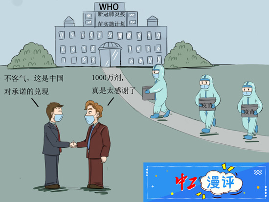 提供1000万剂疫苗,是中国对去年10月加入“新冠肺炎疫苗实施计划”时所许下承诺的兑现,也是促进疫苗公平分配、推进国际抗疫合作、践行人类卫生健康共同体理念的重要举措。当前,全球新冠肺炎感染人数已超过1亿。面对巨大的防控压力和疫苗需求,中国以最切实的行动为全球抗疫斗争作出了贡献,彰显了中国作为重信守诺的负责任大国的使命担当。